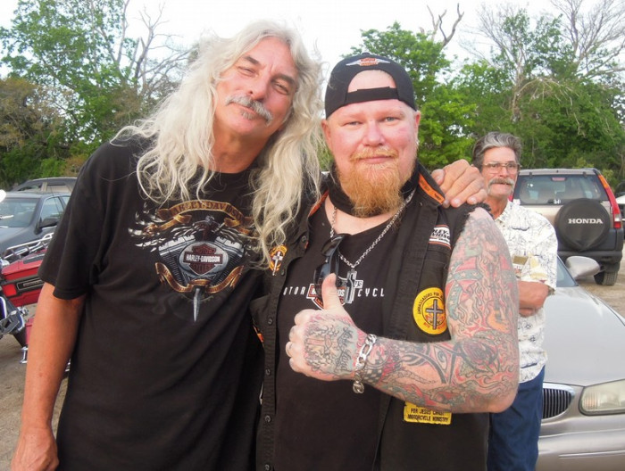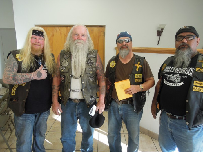Under gudstjänsten predikade Pastor Flathead Tom och Brother Lil Wolf som fortfarande tillhör klubben Outlaws gav ett kort vittnesbörd. Lil Wolf kom till tro men bestämde sig för att inte överge sin familj och sina vänner utan blev i stället klubbens kaplan. Nu är han ett ljus i mörkret och det är ingen annan än Gud som placerat honom där. Jag fick också möjlighet att stifta närmare bekantskap med denna skäggiga broder och jag gjorde en intervju med honom för mitt kommande tv program "Life in Him".