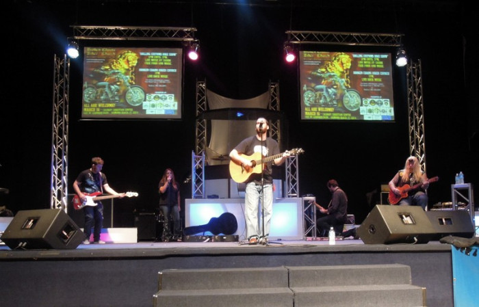 Vårt evenemang ägde rum i skolans gymnastiksal och dit fick de som ville ställa ut sina motorcyklar köra in dem i "kyrkan". Kvällen var något enastående och kristna bikers från hela USA samlades och umgicks. Det var verkligen en enhet och här skulle många icke kristna ha fått bevittna hur de kristna verkligen älskar varandra. Själv fick jag träffa otroligt många bröder som jag endast haft kontakt med på Facebook och det kändes som om vi känt varandra för evigt. Dock kommer vi ju att tillbringa evigheten tillsammans så det var på sin plats att träffas. Gud öppnar dörrar och för mig betydde detta mycket, att få vara en lite del av Guds stora verk bland dessa bikers. Jag fick inbjudningar hit och dit och skulle det vara möjligt skulle jag kunna åka runt och endast vittna och sjunga för bikers. Dock är detta något som jag funderar på att göra helhjärtat några månader om året. USA är möjligheternas land och om Gud öppnar dessa dörrar och vill att jag skall gå genom dem så tänker jag lyda. Tänk att Gud förberedde mig under alla år jag lärde mig spela gitarr och alla år jag gick ner mig då jag levde som rockmusiker och turnerade hit och dit. Idag kan jag använda det jag lärt mig för Hans rike. Pusselbitarna faller på sina platser.