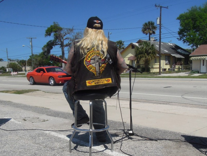 Vi avslutade Bike Week 2012 med att jag sjöng bredvid Highway US1 och Ambassadörs bröderna från Texas vinkade in motorcyklisterna som var på väg hem för att bjuda dem på en kopp kaffe och en bibel. En del stannade, en del åkte förbi. En del vinkade glatt medan en del visade fingret och ropade fula ord till oss. Så är det att vara i Guds tjänst, man får höra allt möjligt men tack vare vår hjälpare, Den Helige Ande får vi kraft att göra vårt bästa för att sprida ljuset.
