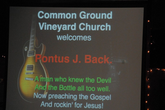 Pastor Todd hade bjudit in Pontus för att vittna, spela, sjunga och predika under två möten, söndagen den 25 mars 2012. Pontus hade ingen aning om vart han var inbjuden utan allt blev en stor överraskning. Första mötet var ett morgon möte för "bikers" och Pontus hade aldrig trott att 300 personer skulle komma till denna gudstjänst kl. 08.30 på morgonen.