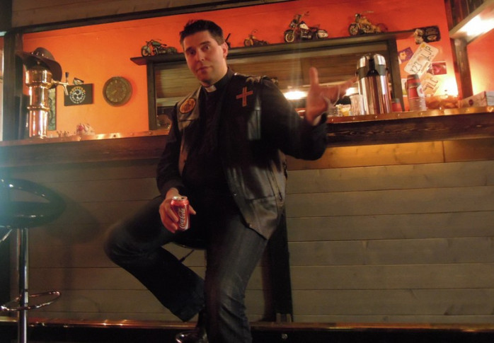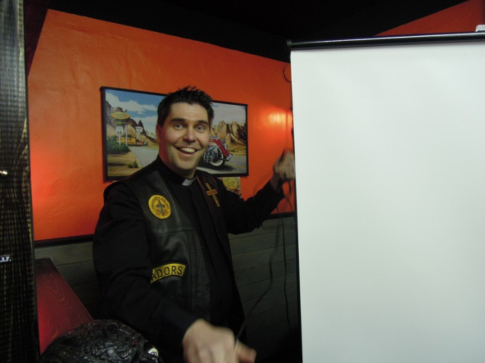 I lördags funderade Pontus vad han skulle tala om under mc-gudstjänsten på söndagen. Han ringde sin broder, kyrkoherde Tom Ingvesgård som lovade medverka med en kort predikan. Ingvesgård kom i god tid och med sig hade han en filmskärm och en videokanon. Gudstjänsten inleddes med en musikvideo från YouTube. Det var låten "New Again" med Brad Paisley och Sara Evans som är inspirerad av filmen Passion of Christ.