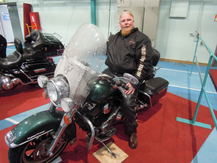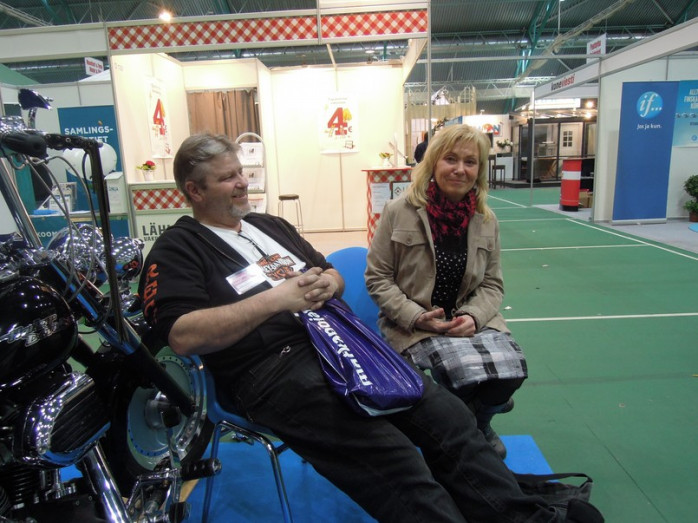 På fredagskvällen dekorerade Pontus och hans fru Hannele montern och vid 22 tiden på kvällen kunde de sätta sig ner och konstatera att allt var klart för årets stormässa. Mässan öppnades på lördagen kl. 10.00 och då hade Pontus redan varit på plats och polerat det sista på motorcyklarna.