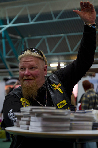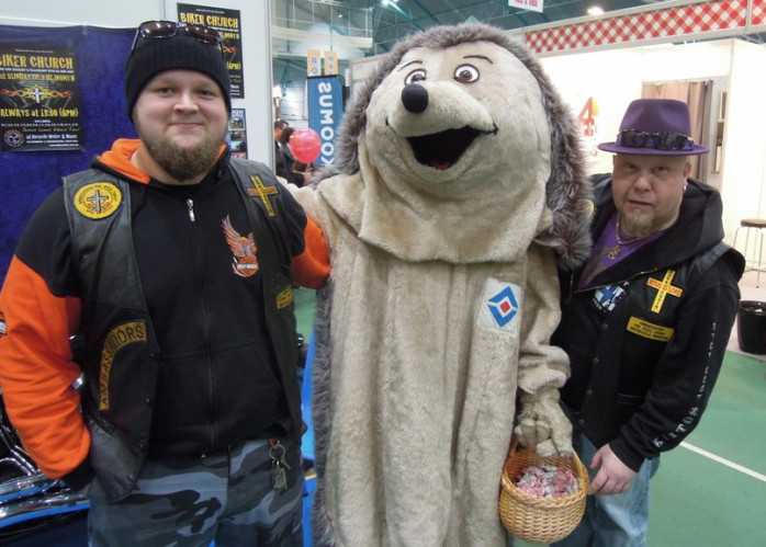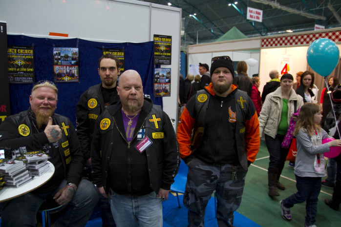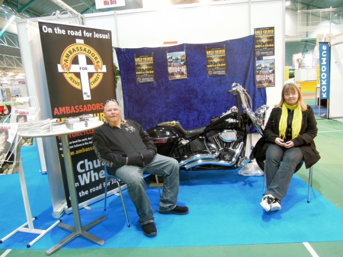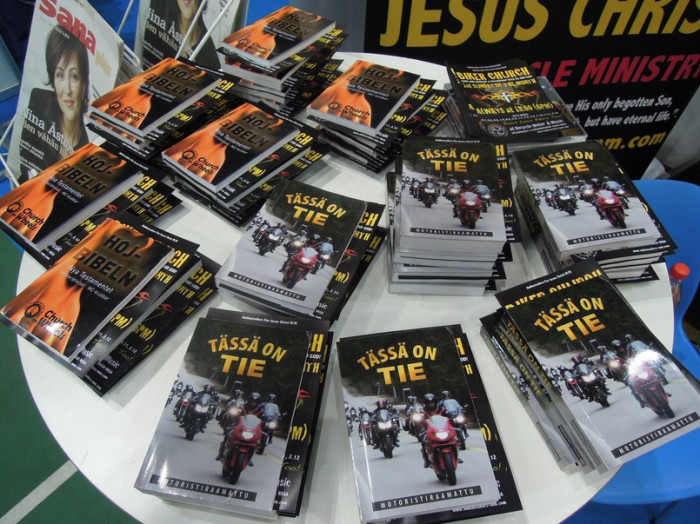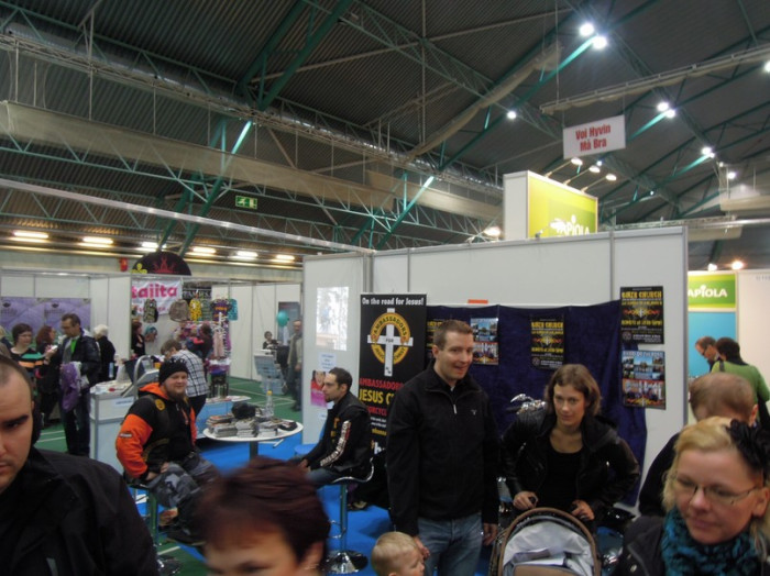 På mässan delade man också ut flygblad med reklam om Ambassadors Biker Church som ordnas en gång i månaden vid Recycle Motor & Music garaget i Vasa samt om Bikers on The Road mc-träffen i Orisberg i juni denna sommar.