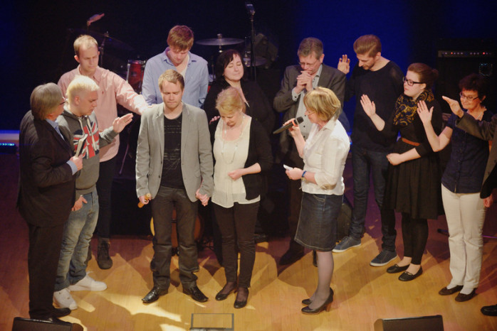 Församlingen bad för Johan och Lotta som nu är huvudansvariga för församlingen.