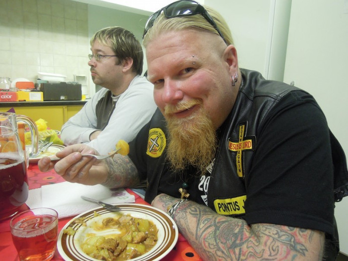 Pontus körde vidare till broder Juuso Laitinens föräldrar där hans pappa Klaus Laitinen hjälpte Pontus med att lasta Juusos Harley Davidson på kärran. Det blev inte precis någon kort paus för Klaus och Pontus synkroniserade direkt i Anden och de hade mycket att prata om. Klaus bor i ett stort hus som tidigare varit lägergård, där tar han och hans fru hand om barn och ungdomar som behöver omplacering. De är även stödhem för ett trettiotal ungdomar.