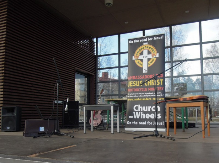 Sirkka ville att Pontus skulle ha med sig sin motorcykel och att det gärna skulle komma fler motorcyklister i teamet. Pontus visste inte riktigt hur han skulle gå tillväga men Gud hade redan allt under kontroll. Pontus fick ett telefonsamtal av en företagare i Tervajoki som ville stöda denna resa. Företaget som sysslar med metallförädling hyrde en bil för detta ändamål på onsdag kväll och Pontus packade in sin HD i bilen och navigerade emot nästa hållplats, Alajärvi.