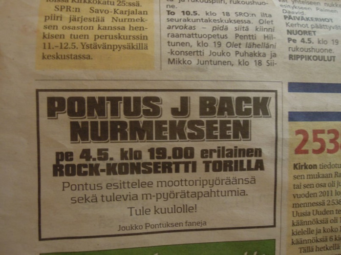 Efter besöket i fängelset åkte Pontus till Siilinjärvi och träffade sin lillabror och tillbaka till Kuopio för att hämta broder Petri som kom med tåg från södra Finland. Tillsammans åkte de till Nurmes. Nedan berättar Pontus om veckoslutet i Nurmes: