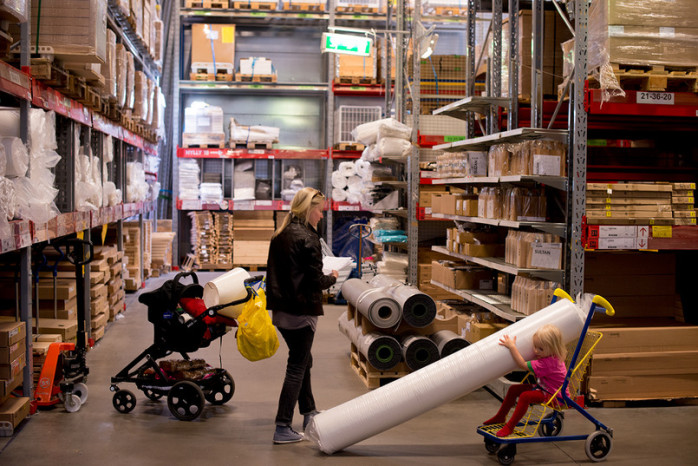 ALLMÄNT. Christa njuter av att få flytta och av att få planera den nya lägenheten. För någon dag sedan utspelades den här scenen i ett varuhus i Esbo.