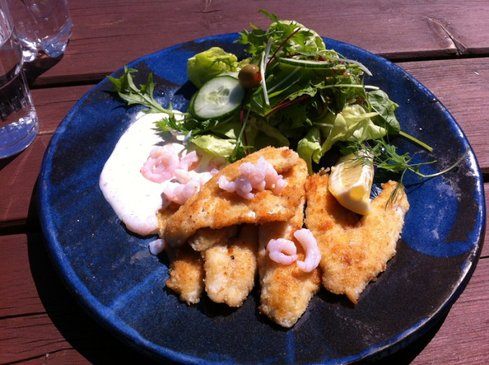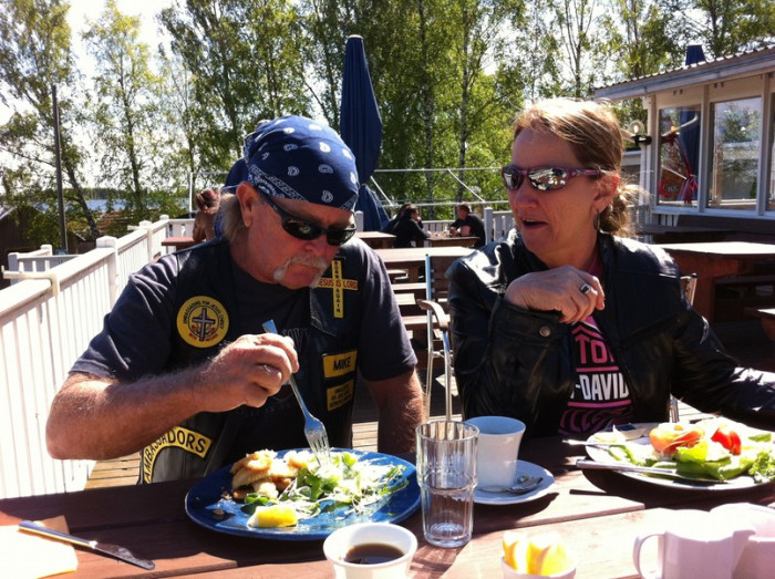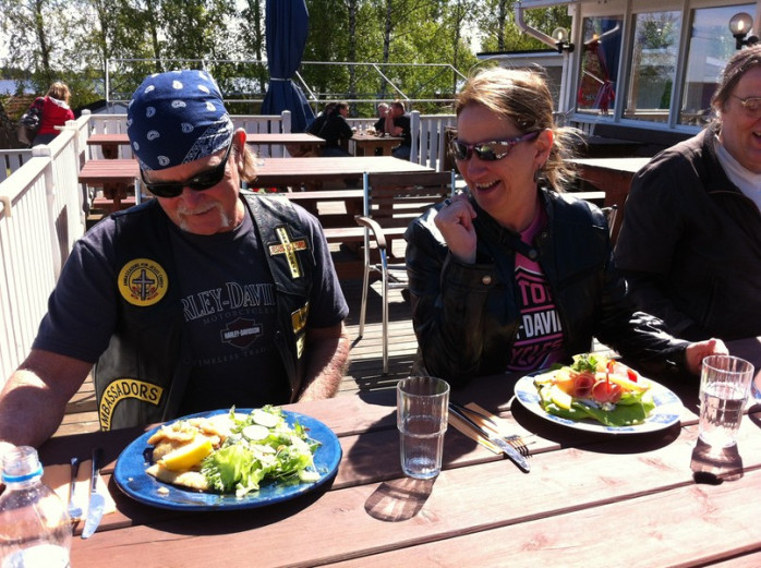 Mike och Teresa var trötta då de kom och idag åt de lunch på Restaurang Arken på ön Replot. Mike tyckte att abborfileerna var utsökta och det var en trevlig stund.