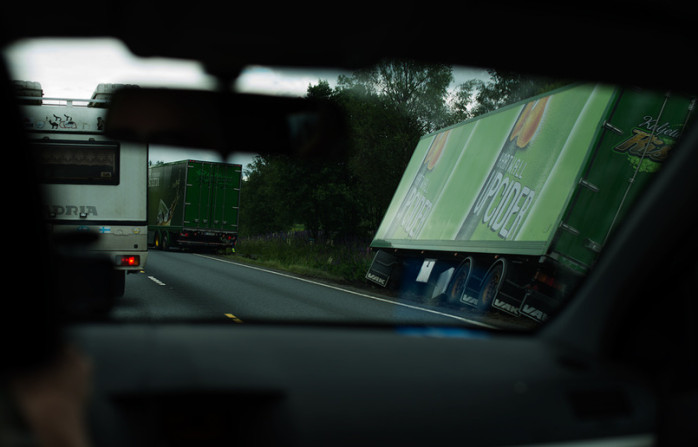 - Nejnej, inte så hårt att bilen flyger ut i skogen och vi krockar och vi alla stöter oss.