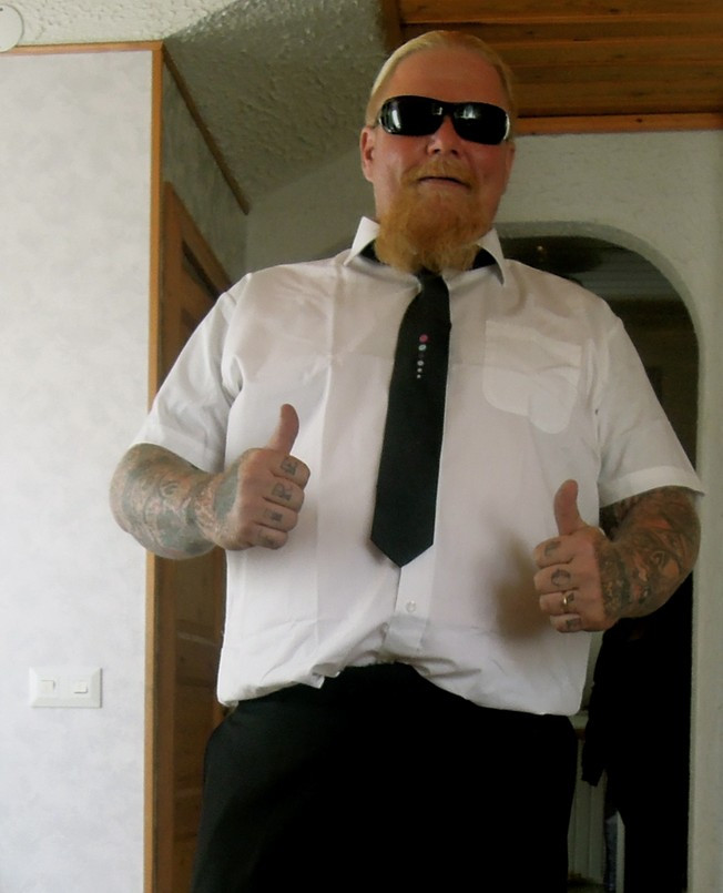 Orsaken till Pontus kostym och slips är att han i dagarna fyller jämna år och på fredagen firar han sin 40 års dagpå Frank Mangs Center i samband med Mangsveckan. Han inbjuder alla som vill komma att komma och matenstår serverad från kl. 16.00 och framåt. Mickelsson.net frågar Pontus varifrån detta med slips och kostym kommer?