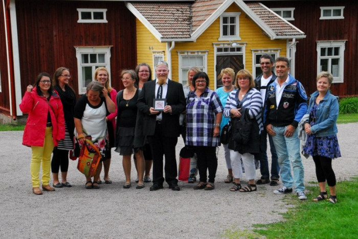 Vid fem tiden dök 13 av mina kusiner från pappas sida upp och de samlades utanför Mangsgården och sjöng för mig. Jag har haft mycket dålig kontakt med mina kusiner sedan mitt nya liv började och igår då jag såg dem alla så insåg jag hur mycket jag längtat efter dem. Allt har dock sin tid och det är endast Guds tidtabell som är den "rätta". Kusin Frippe som är äldre än mig hade inte glömt min barndom då jag var ett inbitet fan av orkestern The Boppers från Sverige. Jag samlade på Boppers bilder och Frippe brukar berätta att oavsett var vi träffades då jag var lite så ställde jag frågan: - Har du Boppers bilder? Igår fick jag en Boppers bild i ram av min kusin. Jag fick också en oljemålning målad av min biologiske farbror Helge Mieskonen.