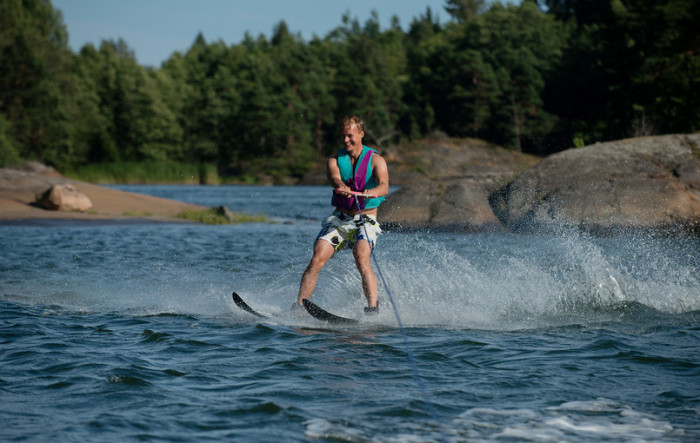 Ted gjorde sin debut på vattenskidor och gjorde det med bravur, utan att falla i starten.