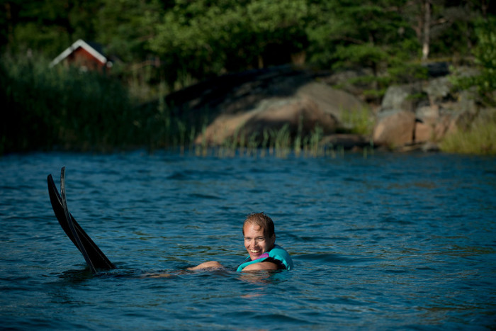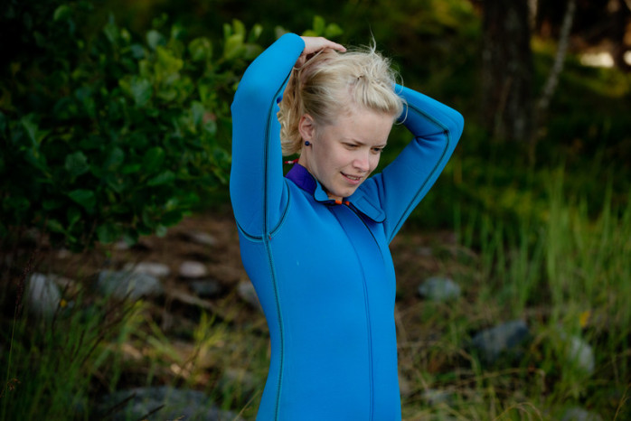 - Den är nog liten, den är en barnmodell, konstaterade Hanna om dräkten som var fö 160cm-personer.