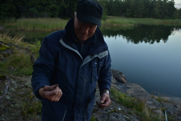 Det nappade helvilt och fafa fick lägga fem nya maskar på medan Linus metade med samma. Men inga fiskar var stora nog att fastna på kroken.