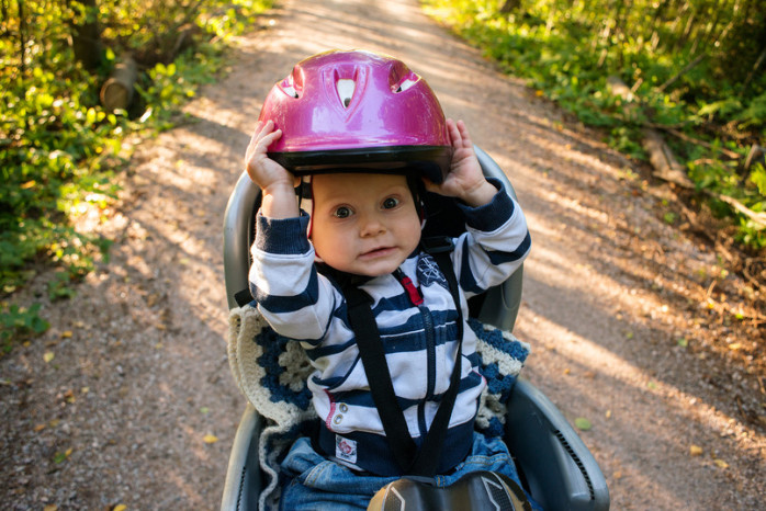 att gossen inte ville ha på det pottliknande skyddet på sitt huvud. Amos fick dock veta att det inte är han som bestämmer och följaktligen hölls hjälmen kvar tills cykelturen var slut.