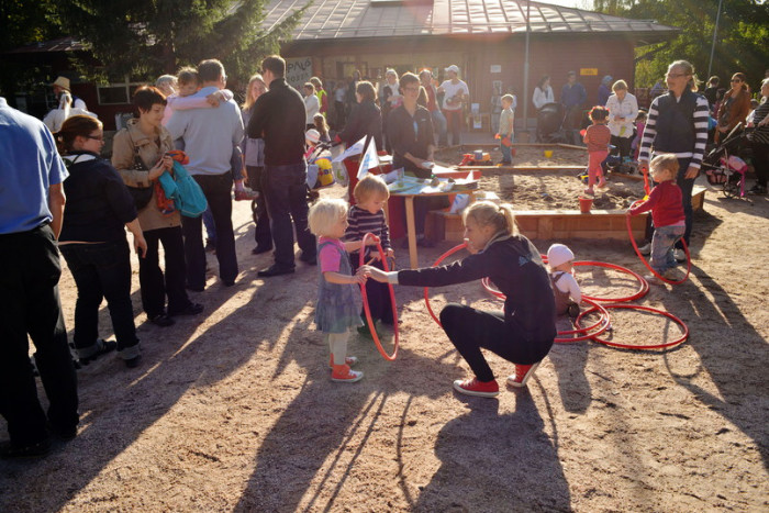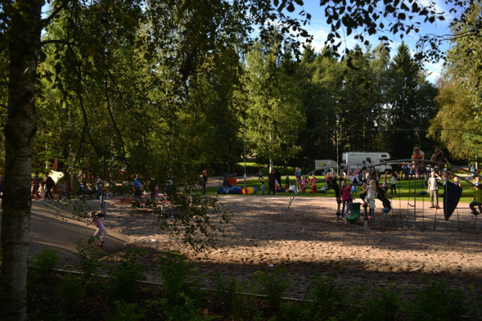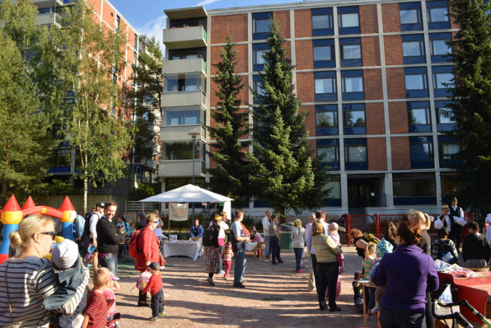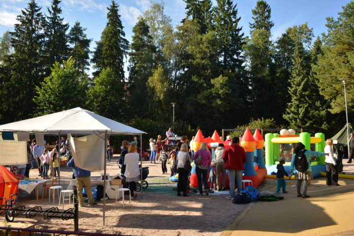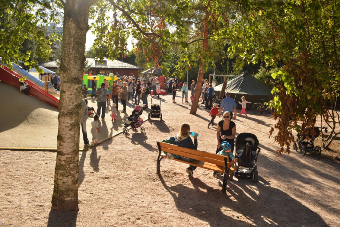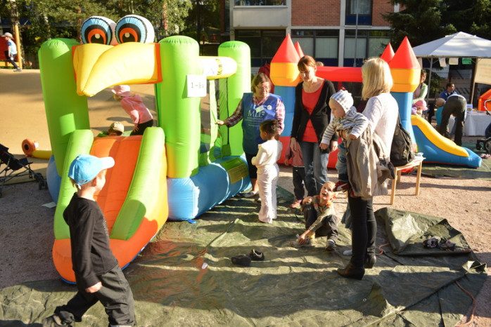 ALLMÄNT. Rakt utanför Christas och Linus höghusfönster i Olars finns det nästan hektarvis med lekparker. I tisdags ordnades ett jippo i mittenparken som Amos och Juni och många andra barn uppskattade.