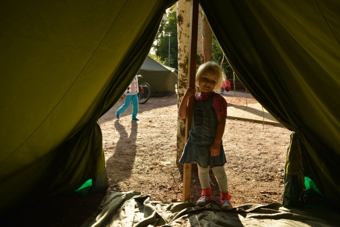 På programmet fanns folkdans, hoppslott, redskapsgymnastik, scoutpresentation, mm. Amos gillade mest gruset på marken och Juni tyckte om redskapsgymnastikringar och hoppslotten.