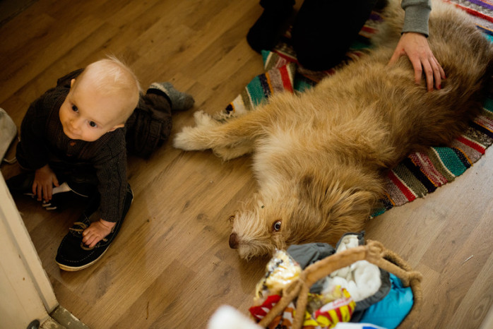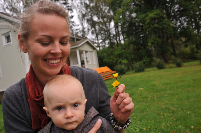 Besöket gick galant, förutom att Amos gnällde lite extra mycket. Manda var en extragenerös värdinna som lät gästerna palla äpplen och rödavinbär.