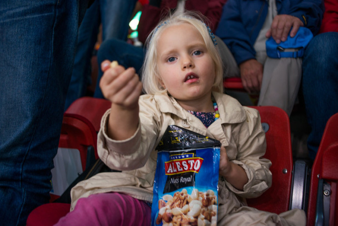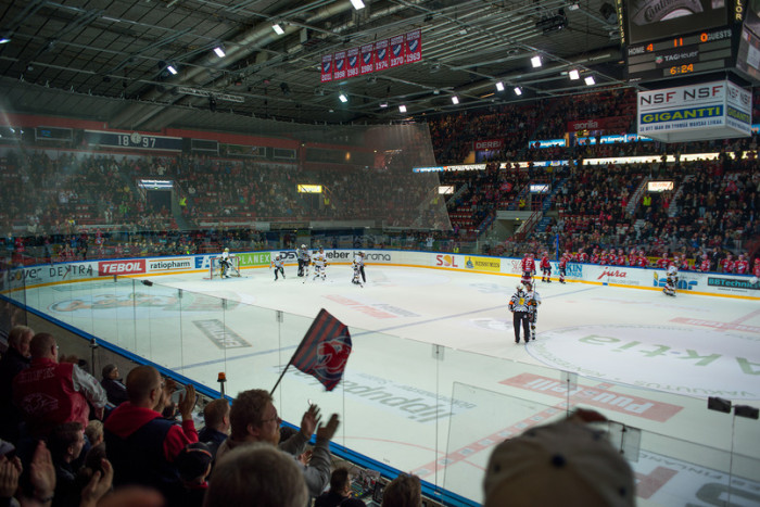 Juni och Linus kom en timme för tidigt till matchen som skulle börja först 17. Duon kom lagom till domarnas uppvärmning. Vem visste att domarna övade nedsläpp och olika skridskokoreografier? På tal om domarna så saknas deras namn nuförtiden från deras ryggar och på plats finns numror istället.