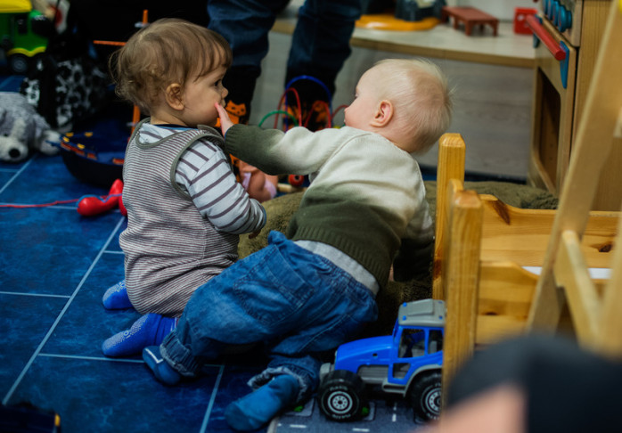 För att Tom, Juni och Linus skulle få ens lite ro vid buffén lät Linus Amos först äta sig mätt och sedan få en fet flaska varm mjölk.