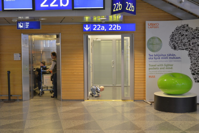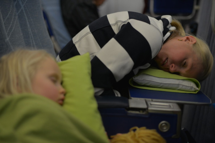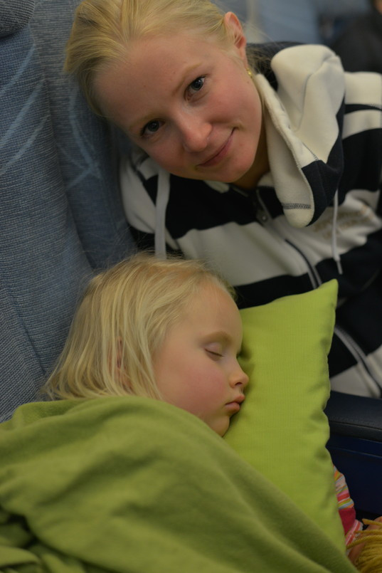 Som treåring betalar Juni fullt pris och därför har hon egen plats och mat, till skillnad från Amos som reser i famnen. För barn under 15 kilogram ger Finnair möjlighet till en barnsäng för ett tilläggspris på 40 euro per resa.
