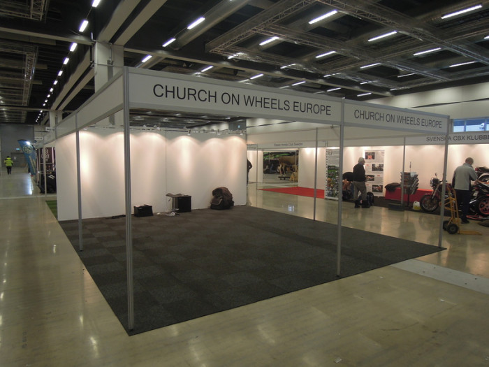 Onsdagen den 23 januari körde de sina grejer till Church on Wheels montern och valde att lämna utrymme för de andra som skulle bygga montern inför mässan.