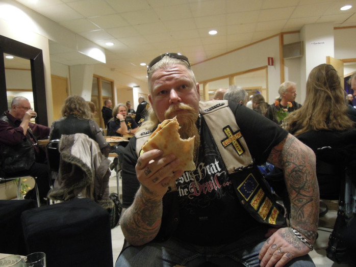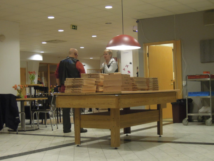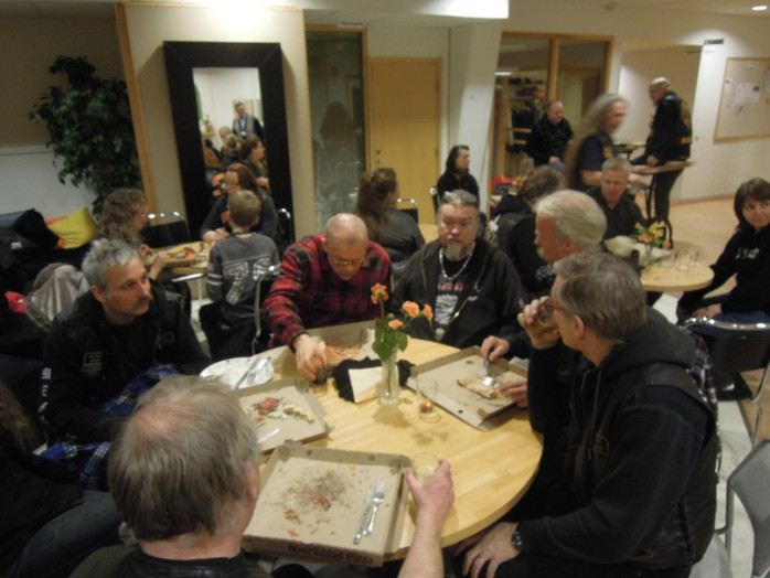 Efter mötet var det dags för gemenskap och då hade Anja och Berth Haka från Ambassadors For Jesus Christ skött om serveringen mycket bra. Ett fyrtiotal pizzor hade hämtats och alla fick sin pizza som de tidigare hade beställt. Initiativtagaren Pontus var den enda som blev utan pizza och själv skyller han på ett mänskligt fel.