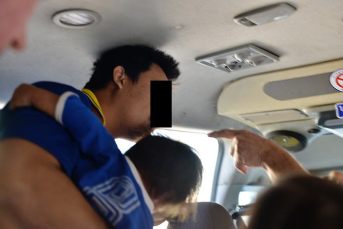 Medpassagerarna ropade att föraren skulle ringa till polisen, men föraren följde lungt med och i själva verket var det han som släppte in aggressionen i bussen. Incidenten tog plats när minibussen väntade på färjan. Mamman steg gråtande av minibussen och följde med mannen och barnet.
