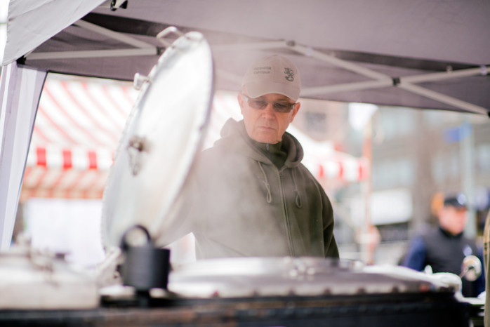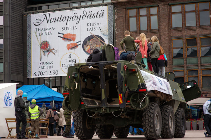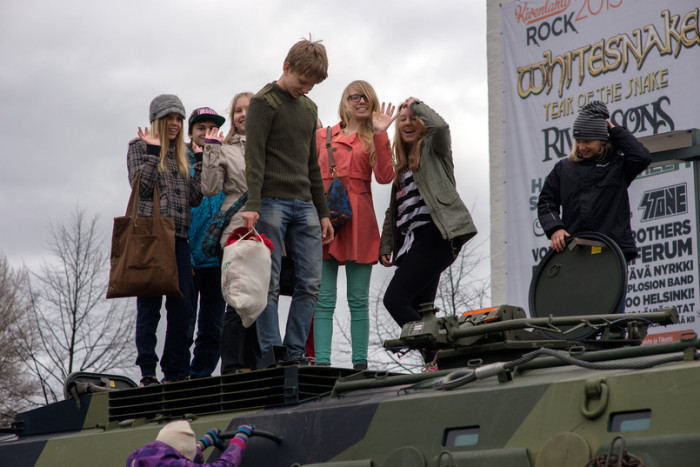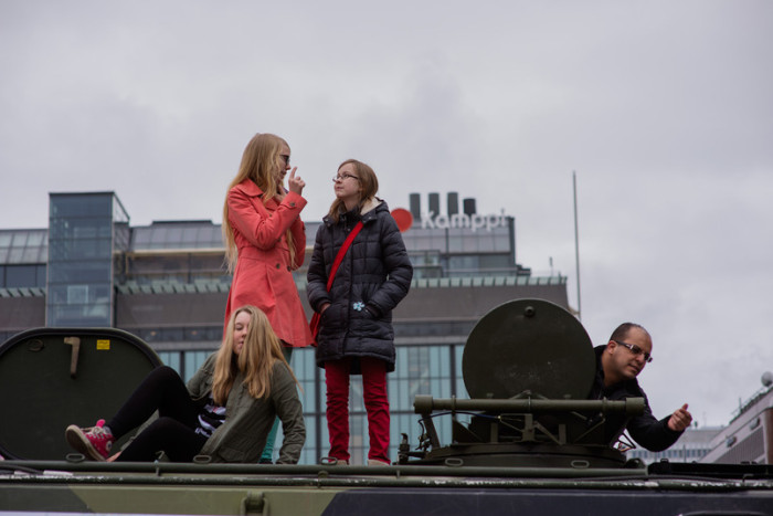 Förutom ärtsoppa bjöd reservisterna även på presentation av vapenreplikor, persedelförsäljning och en pasipresentation. Pasin hade reservisterna fått låna från Nylands brigad som tack för gott samarbete. Pansarfordonet var mycket populär bland de yngre gästerna.