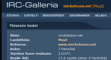 ALLMÄNT 21/11 2006Magnus Wikström, profilen Yemkela, på irc-galleria.net har på sidan nyligen grundat en Mickelsson.net grupp.