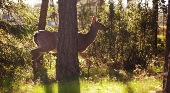 ALLMÄNT 30/05 2009Hjortar verkar inte kunna identifiera människor som rör sig långsamt eller som står stilla. Hjorten Leif-Johnny tittade glatt upp när Linus fotade, men fortsatte käka eftersom han inte såg någon rörelse.