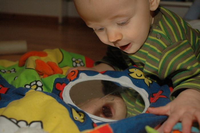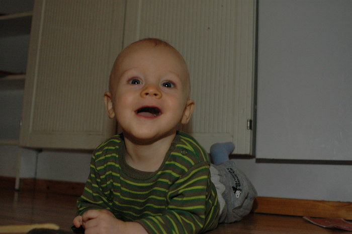 Aron är en pigg liten krabat som uppenbarligen gillar att le mycket, även när han blir matad med mosad broccoli lyckas han klämma fram ett leende mellan raderna!