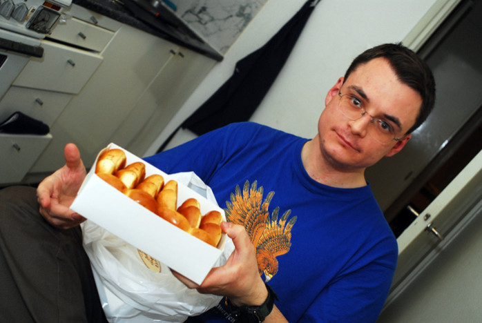 Viktor lägenhet är nystädad och fin, nästan klinisk i ungkarlsmått mätt. Men det var ändå serveringen som tog priset, efter en gourmékupp till Delikatessen bjöd han på inrefilé och graverad havslax. Till efterrätt bjöd han på Ekbergkonditoriets lussebullar, julstjärnor och pepparkakor.