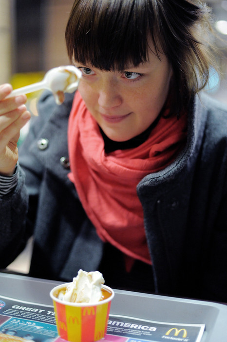Efter lite "gult snö", som Aami inte valde att kalla kolasås-glassen, avslutades experimentet och flickorna kom troligen tryggt hem.