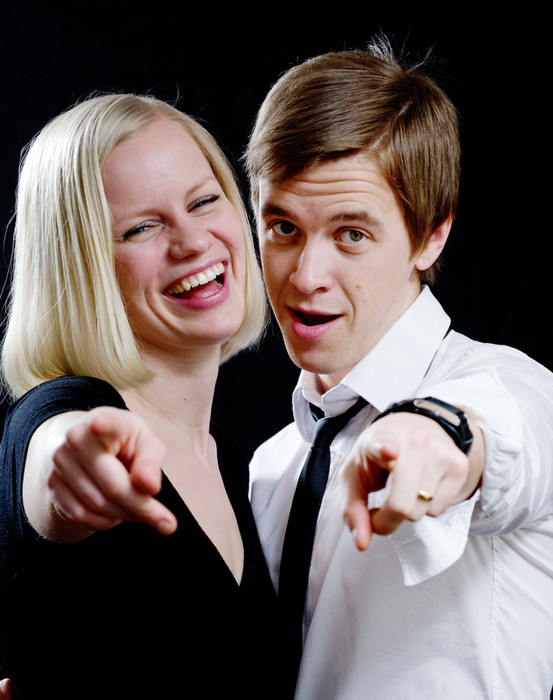 Markus kommer att vara med i Svenska Teaterns Playme-musikal från hösten. Som bäst spelar han i Evita-pjäsen i Åbo. Malin jobbar på vardagarna som lärarinna.