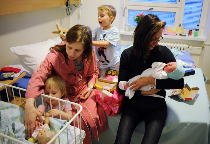 - Det är mycket ovanligt att två syskon är här samtidigt med sina nyfödda, konstaterade en från personalen på Kvinnokliniken i Helsingfors.