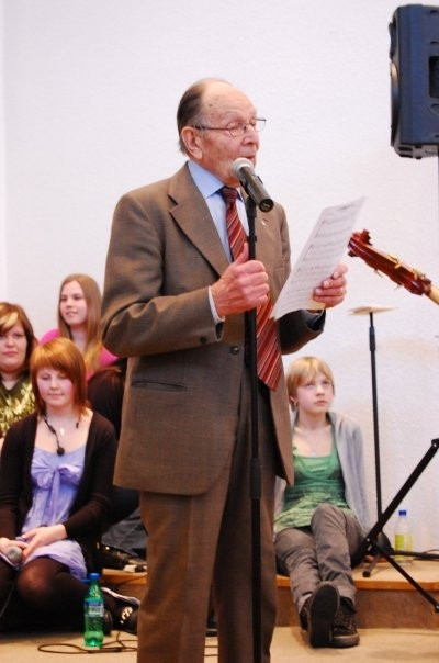 Kvällens äldsta gäst har idag den 11.4 fyllt 100 år! Han heter Harry Holtti och bjöd publiken på 5 sånger frånen skiva som han kom ut med för 5 år sedan. Han fick publiken till skratt men hade även allvarsamma och eftertänksamma texter. Han berättade att en av sångerna ville han ha med i kistan: "..börja om än en gång i mitt liv." Han betonade att trots att han nått 100 år nu vill han ändå "börja om" pånytt och pånytt. Han utstrålade glädje och energi! Han påpekade också flera gånger vad som hållit honom i trim genom livet, vilket var tre saker: Han har levt ett "religiöst" liv, ett giftfritt liv, och ett cykelliv. Han har alltså levt med Jesus, han gav uppp kaffedrickande som 16åring och han älskar att cykla!