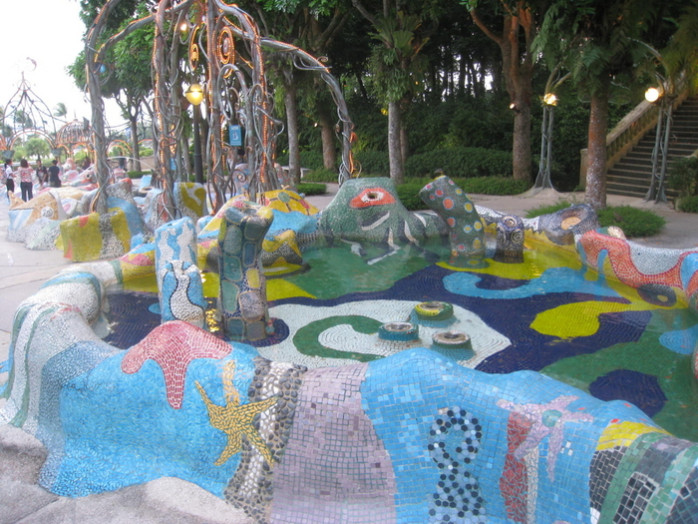 Att åka över till ön Sentosa var som att åka till en oas mitt i storsaden. Där fanns mysiga stränder och grönområden, och en massa turistattraktioner.