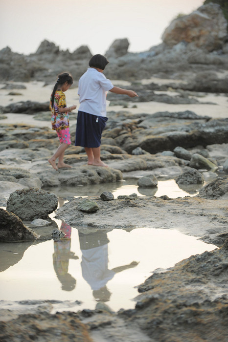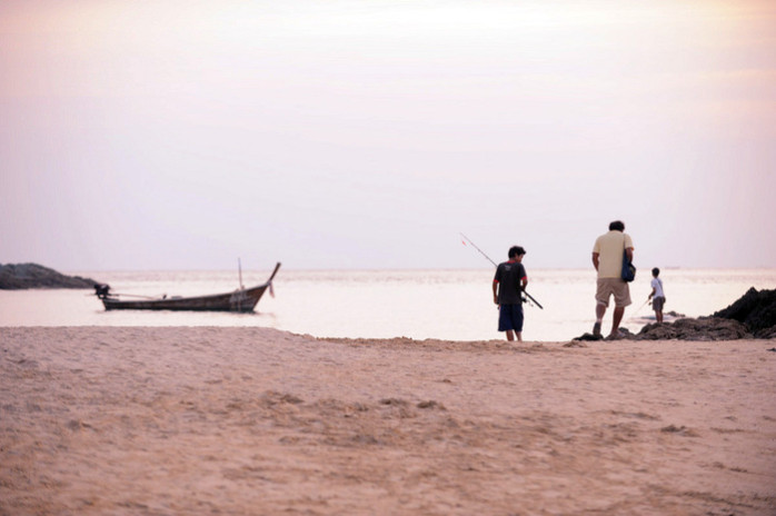 Linus testade att snorkla och kunde konstatera att fisklivet däremot var mycket rikt. Mot solnedgången samlades thailändska grabbar för att fiska med kastspö.