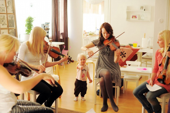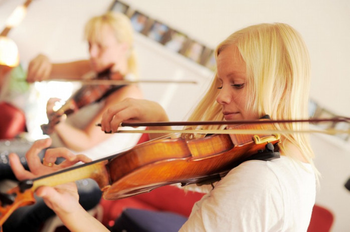 ALLMÄNT. Violingruppen Jepokryddona spelar vidare trots att violinspelarna bor på olika håll. I helgen spelade de i österbotten och i onsdags övade de i Christas vardagsrum i Helsingfors.