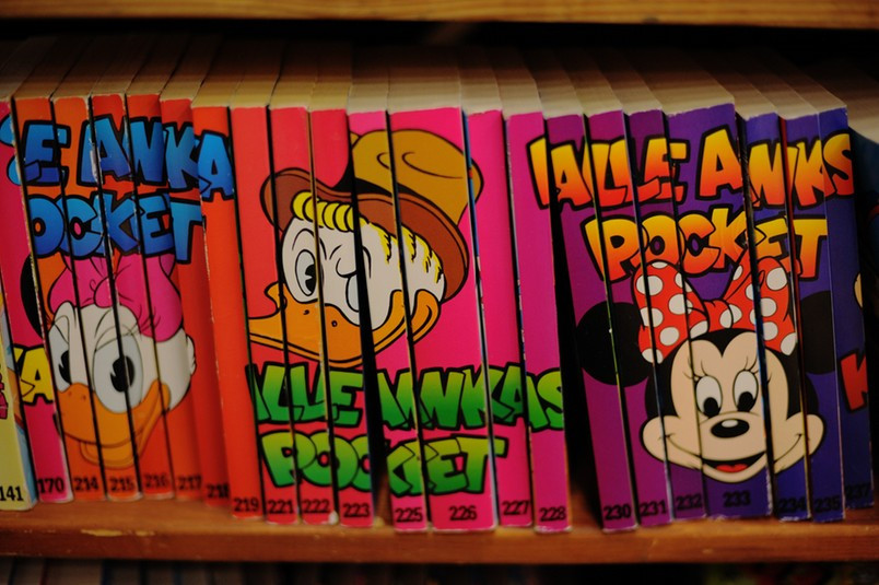 Men på finska gör WSOY ett gott jobb. De sålde nämligen också Kalle Ankas pocketar för 1,5€ / styck jämfört med ett antikvariat brevid som sålde begagnade svenskspråkiga pocketar för 3,5€/styck.
