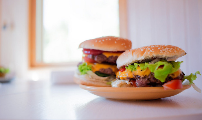 Rada i flera våningar och speciellt gott är det att lägga två biffar med i burgaren.