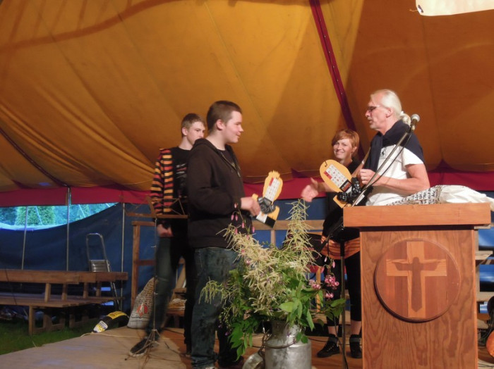 På kvällen var det andakt inne i slottet där Pontus vittnade och bland besökarna fanns två läkare som vittnade om att det verkligen ÄR ett mirakel att Pontus lever idag. På kvällen blev det mera musik, vittnesbörd och Pastor Ulf predikade. En mycket lyckad träff tyckte arrangörerna och Pontus