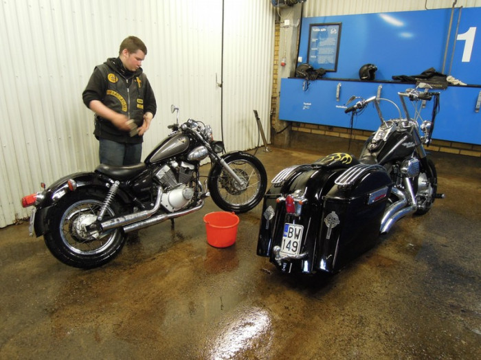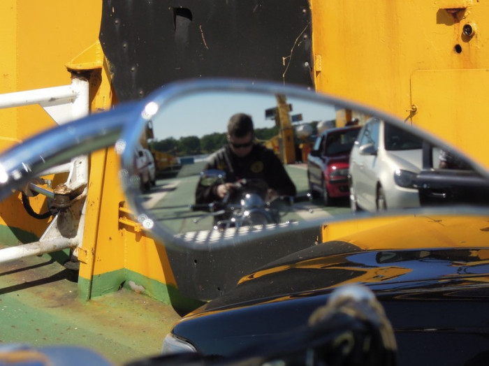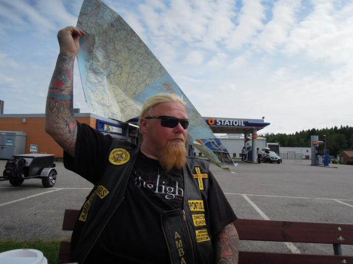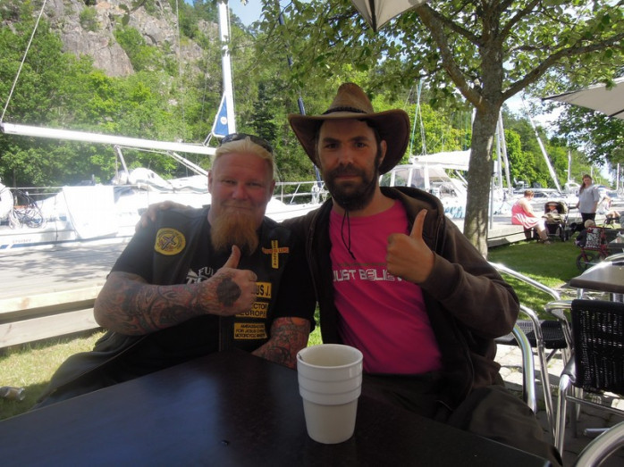 Efter att ha avnjutit lunch på Frank Mangs Center åkte Pontus och Sebastian via Lappfjärd för att motta Herrens välsignelse över deras färd av kyrkoherde Tom Ingvesgård. Från Lappfjärd åkte de små vägar via Sideby, Merikarvia, Ahlainen, Raumo och Nystad till hamnen i Åbo där de steg ombord på Viking Isabella till Stockholm i Sverige. Eftersom en av motorcyklarna hade släpvagn fick de betala extra och priset blev det samma som för en personbil fastän de fick parkera bland de andra motorcyklarna.