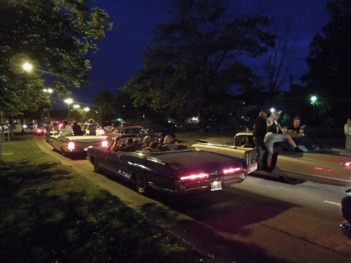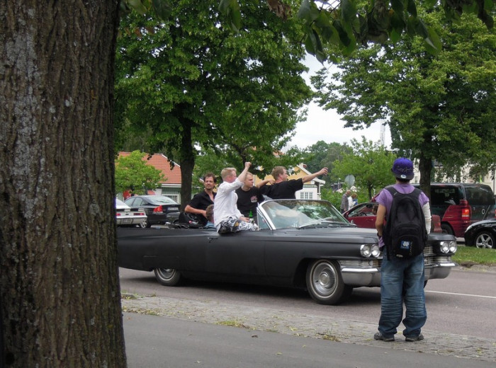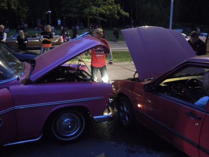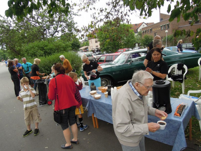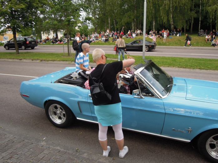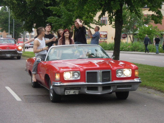 På kvällen var det dags för crusing och närmare 20.000 bilar körde genom staden. Rutten gick förbi Pingstkyrkan där församlingen bjöd på kaffe och även serverade kaffe direkt till bilarna som körde runt, runt och runt. Pontus satt på en pall och spelade andliga låtar och ett gäng delade ut biblar och samtalade med människor.
